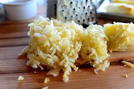 Bake the potatoes until tender, 45 minutes to 1 hour. Allow to cool, and then peel and grate them. Season well with salt and pepper.