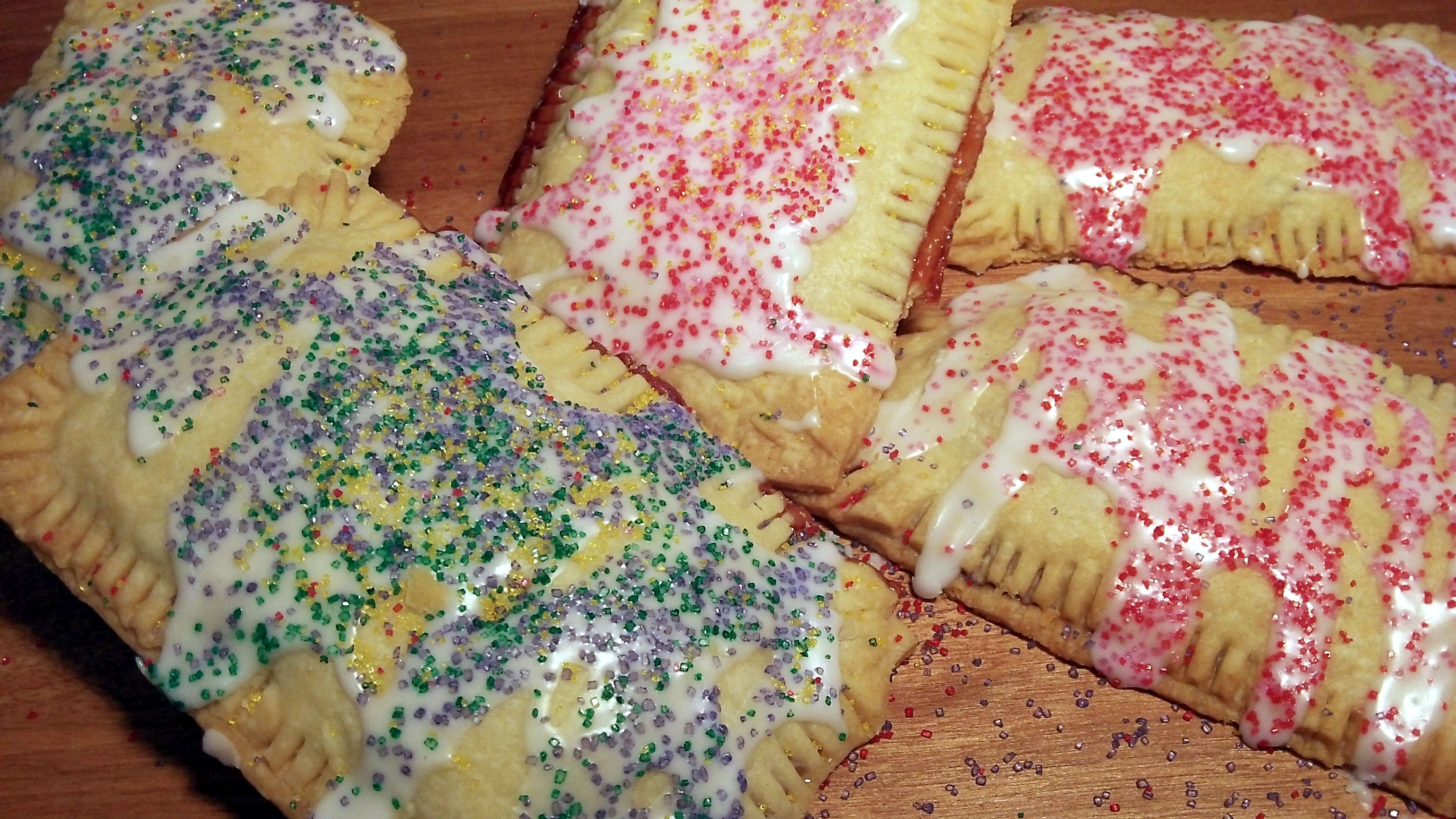 Position one oven rack near top third of the oven and a second oven rack near bottom third of the oven. Preheat oven to 375 degrees. Bake frozen tarts until golden, rotating racks once halfway through baking, about 25 – 30 minutes (some of the filling may leak out, which is fine, just peel it off once it cools). Allow to cool on baking sheet 10-15 minutes then transfer to a wire rack to cool completely.