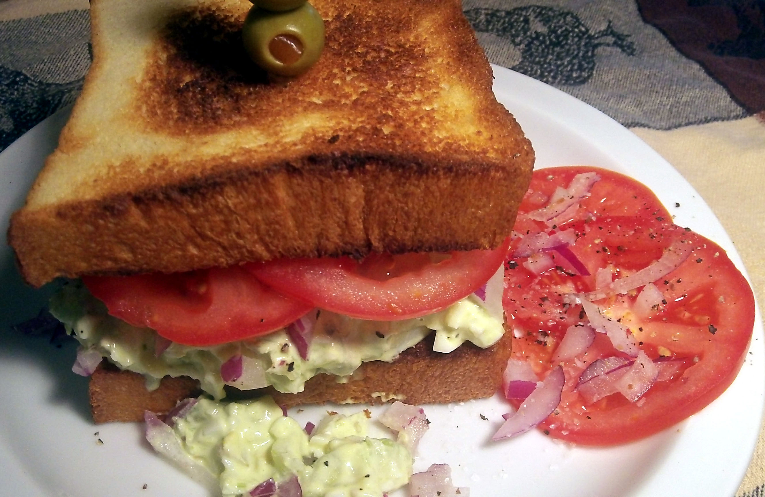 This humble sandwich is delicatessen worthy, hands down. The simple pairing of the two basic main, but essential ingredients is a sandwich shoppe match made in heaven. The soft buttery texture and flavor of avocados blends perfectly with the creaminess of the eggs and mayo. The remainder of the ingredients compliment, simply. This undemanding spread is destined to become a permanent fixture in your frig; enjoyed for quick lunches, for light, but satisfying dinners, the base for appetizers or a swift late night snack.