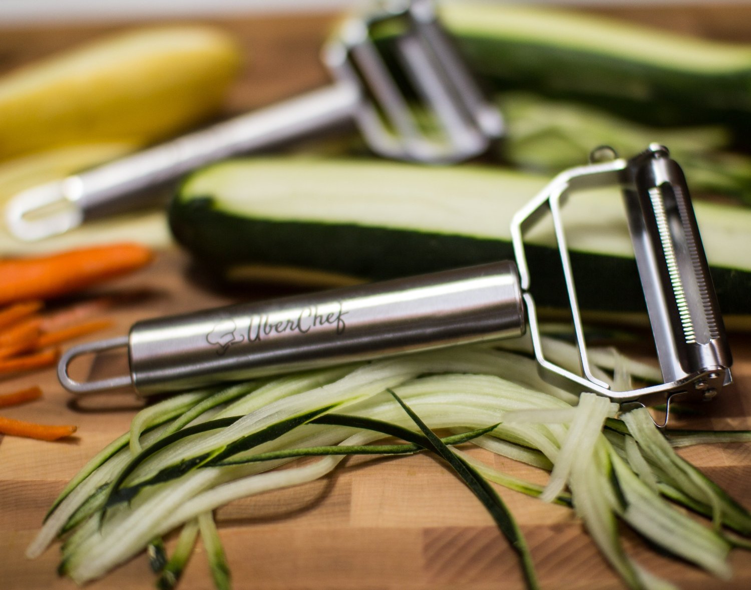 ★ ENDLESS RECIPES & DISH OPPORTUNITIES: From zoodles (zucchini noodles!) to garnishing salads and appetizer to sweet potato fries, our Dual Julienne & Vegetable Peeler has you covered. Next time your guests ask you how you made such an amazing dish, don’t let them know you sliced your work in half with your UberChef Vegetable Peeler.