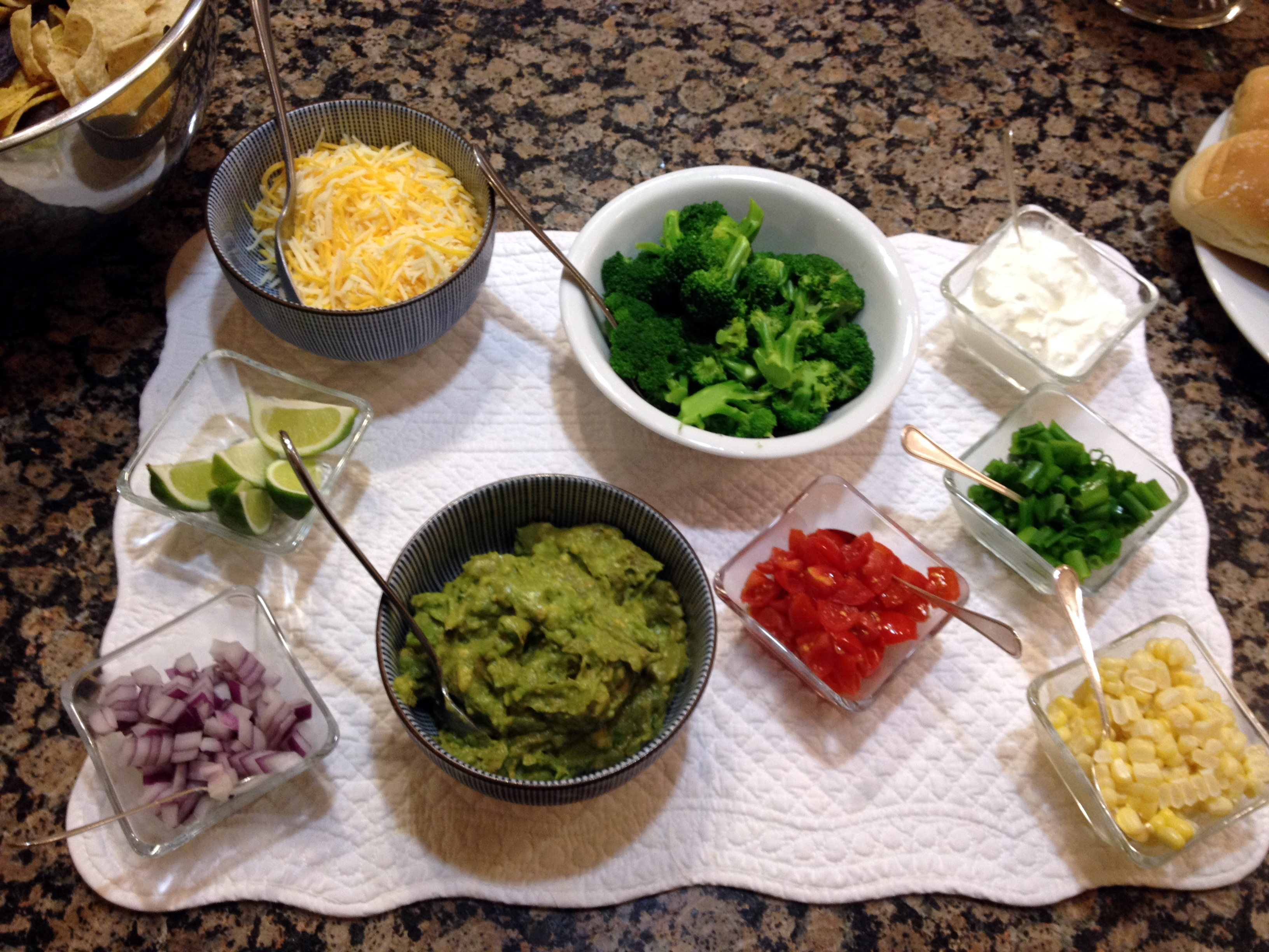 Don’t want to wash bowls? Scoop and fill small crusty loaves of bread and tear and dunk as you go!