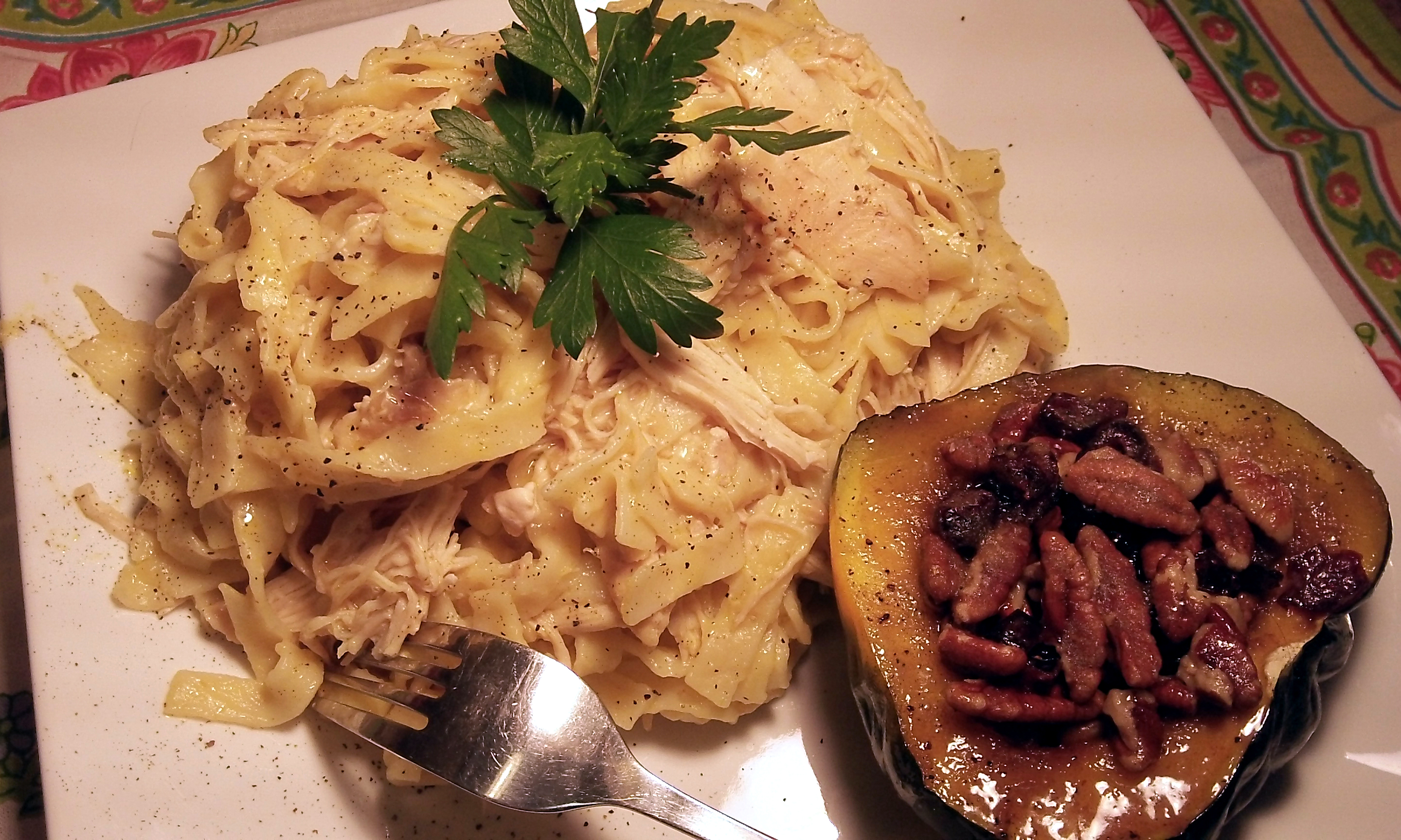 Lana when you add the noodles last do you leave your crockpot on or off?? Also i would like the squash receipe.. Thanks and I will let you know as it is in the crockpot right now..