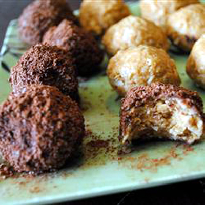 Shape mixture into 1 inch balls. Roll in cocoa, toasted coconut or oats. Chill thoroughly before serving; store remaining nuggets in refrigerator–if they make their way there at all 🙂