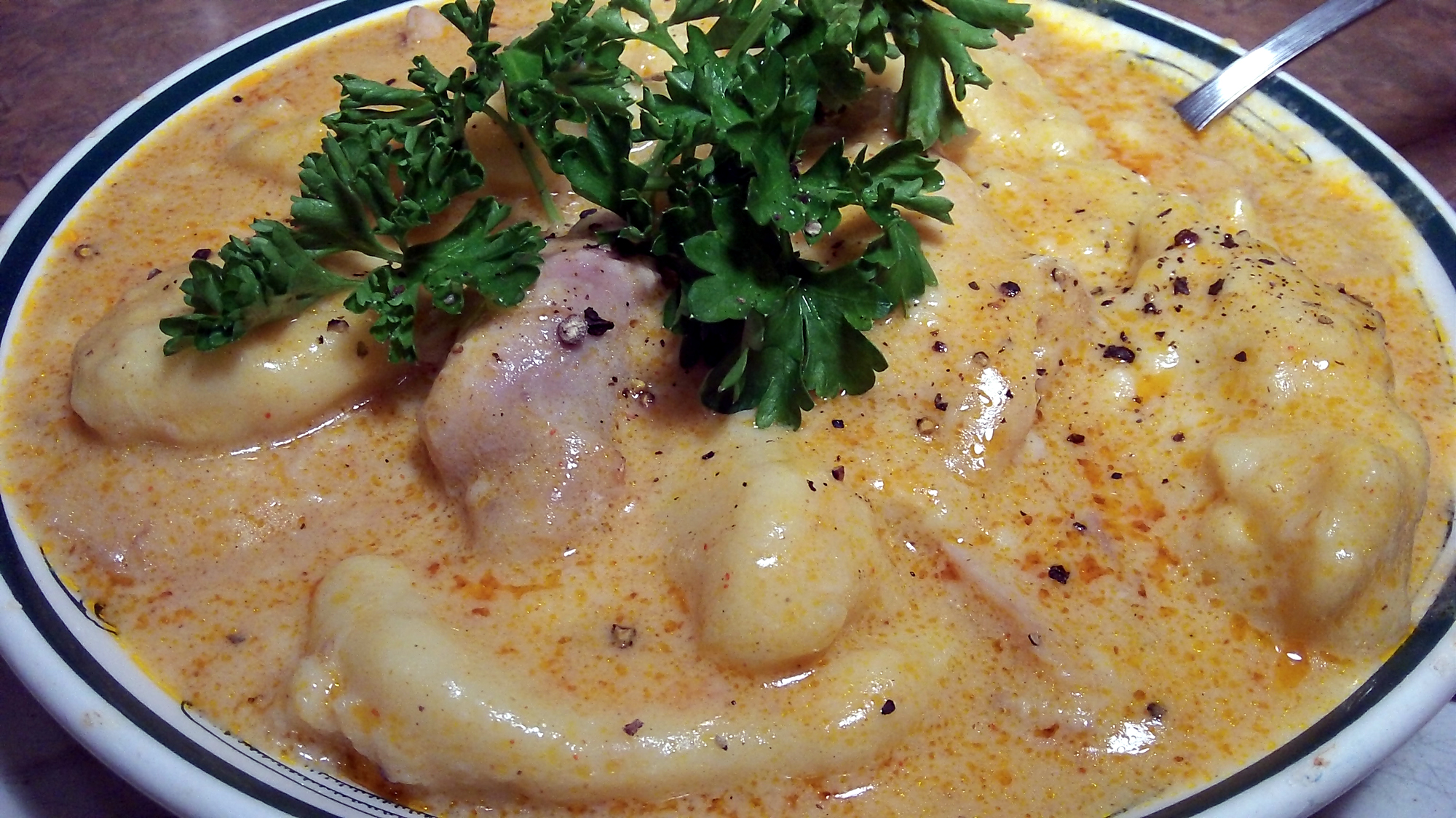A tender scrumptious, classic, ethnic chicken dish braised in a creamy spice-filled sauce including the traditional Hungarian ingredient – paprika – along with other spices and sour cream. This is an old family recipe for Chicken Paprikash handed down to me from a wonderful Hungarian neighbor who took pride in her family recipes. Extremely luscious on cold, winter days when the need for comfort food is in demand.