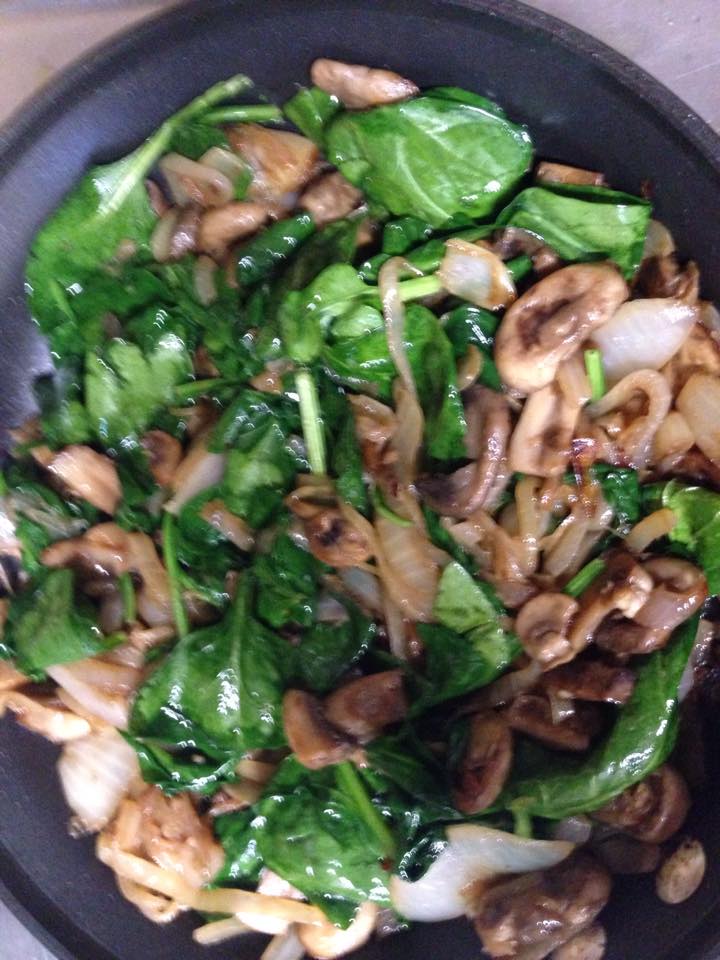 Step 2. Adding mushrooms and spinach: