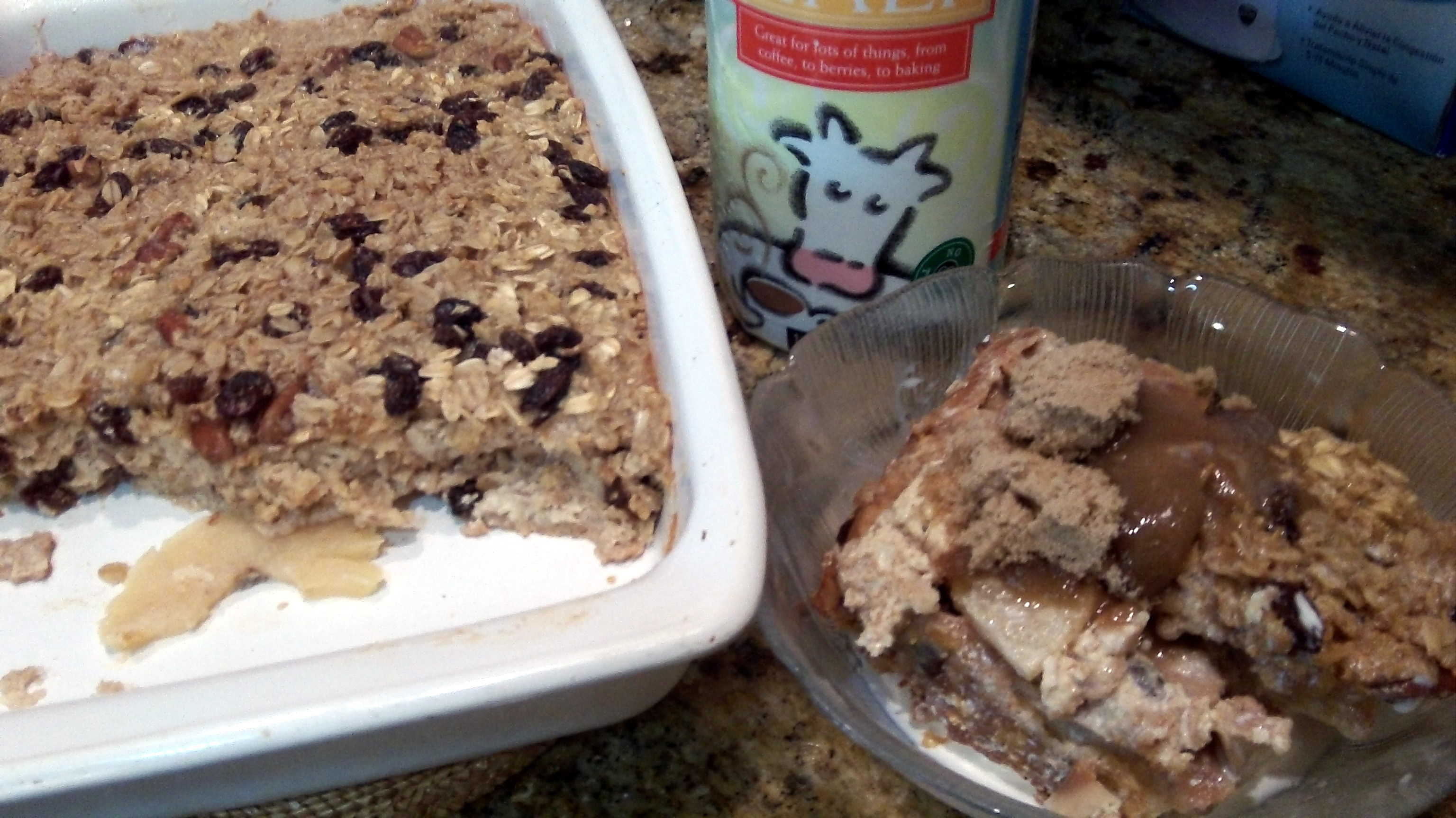 Scatter apples evenly on the bottom of the prepared baking dish. Pour the oatmeal mixture over top and spread evenly. Bake for 40-45 minutes, until top is golden and the oats are set. Serve warm or at room temperature with plenty of milk or cream. It can be made ahead and reheated.—ready when you are!